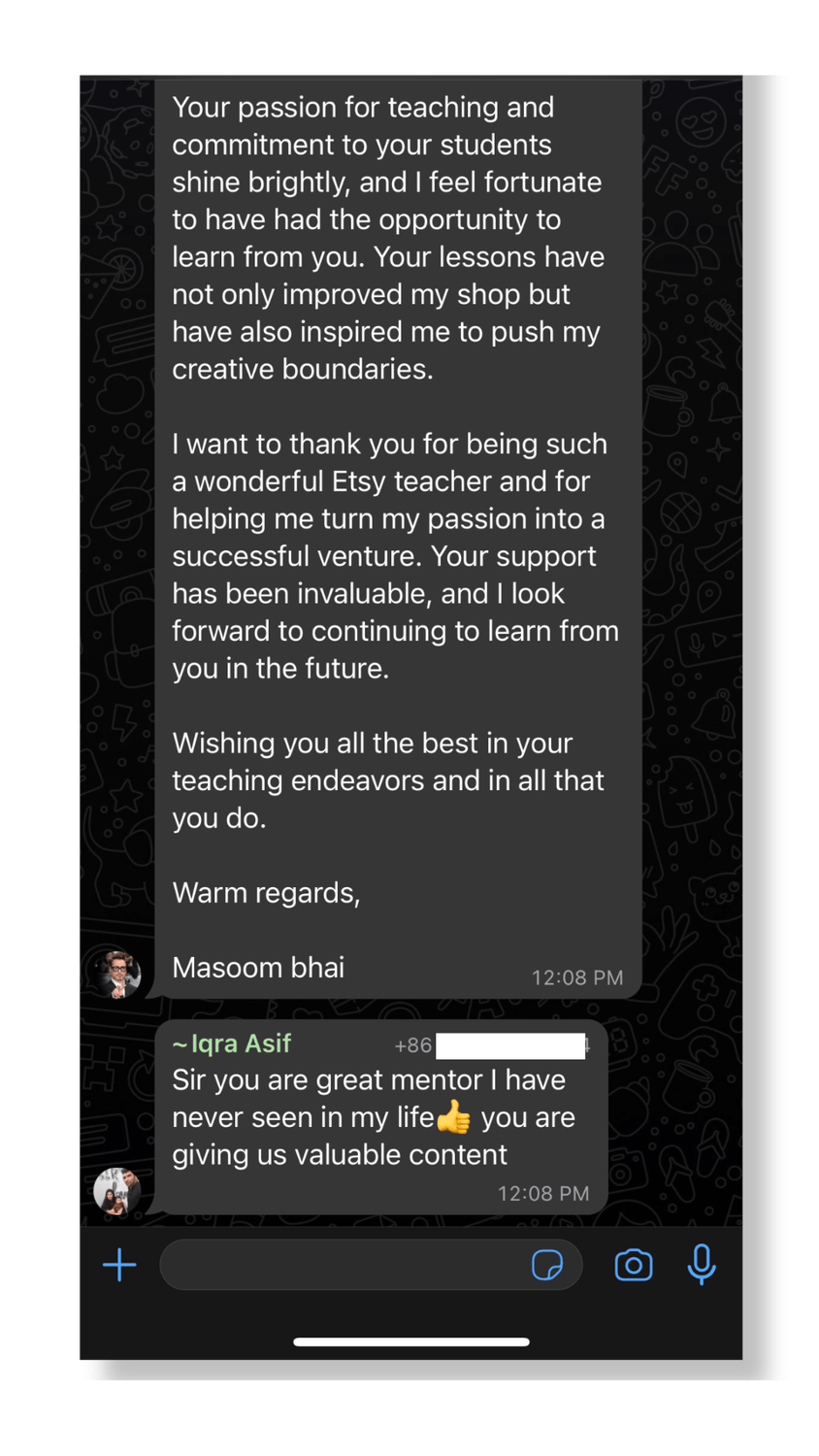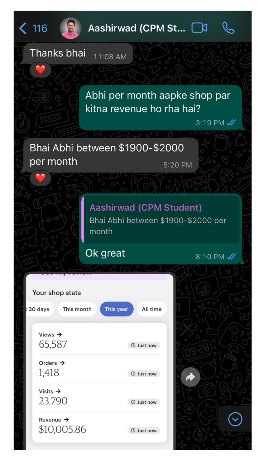 I started selling digital products on Etsy in 2021 and since then, built multiple Etsy shops & helped 1,500+ Indian sellers build real businesses on Etsy and earn in dollars with my CPM practical program & Done-for-you services.