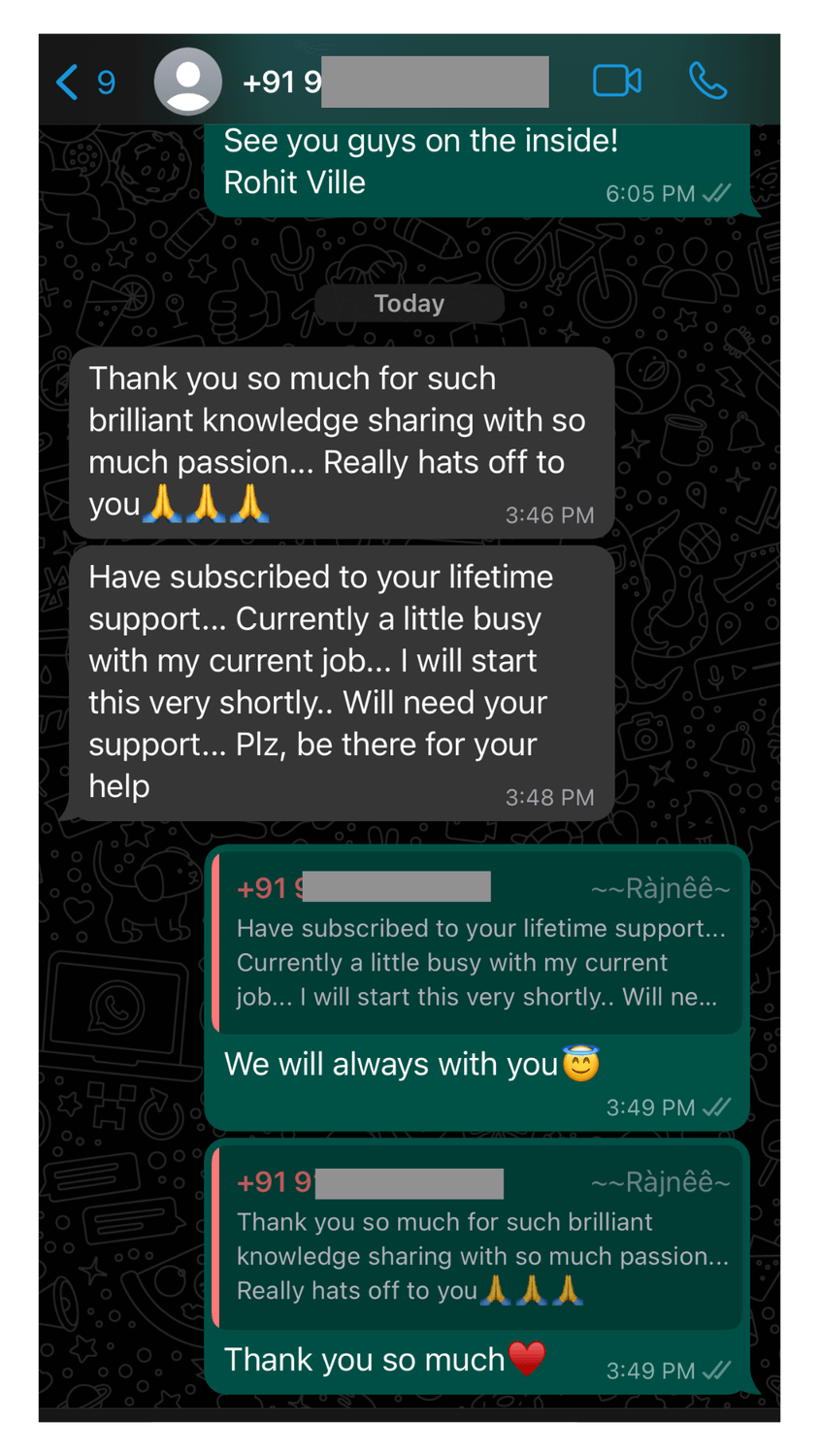 Our team and me is there to help you 24/7 with your business and learning. We also have weekly live calls to clarify your doubts. Even I can proudly say that you'll get the guidance & support that no one can provide you. (It's my promise:)